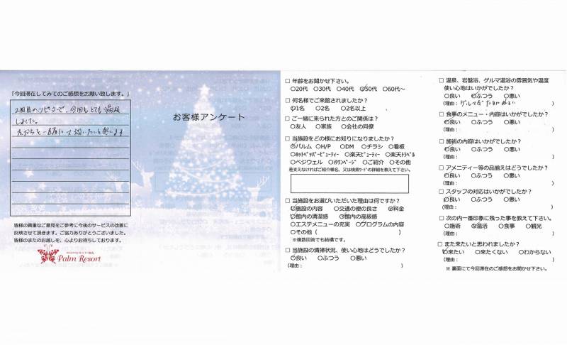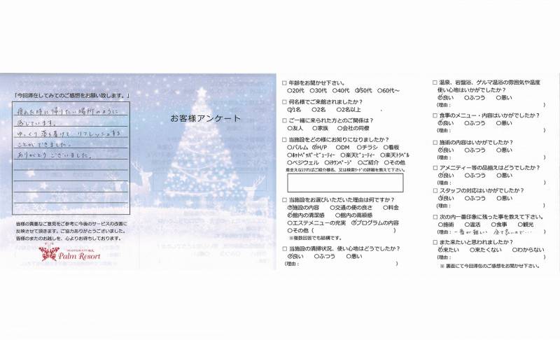 2回目のリピーターで今回もとても満足しました。 友だちと一緒に又伺いたいと思います。