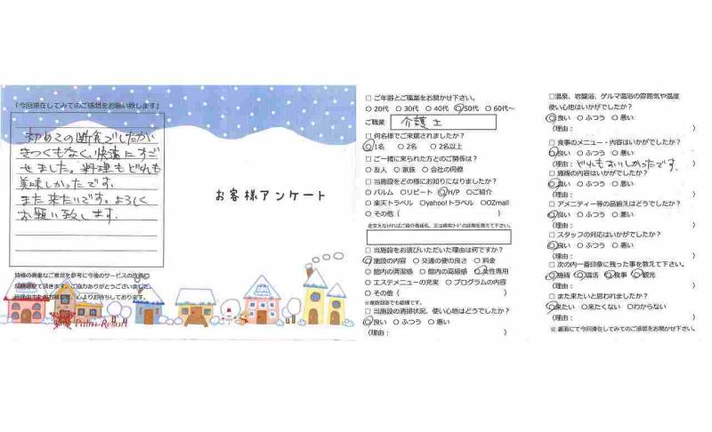 今回もお世話になりました。 一人だったのでいつもよりちゃんと温活 できたかなあと思います。いつも最高の おもてなしありがとうございます。 湯たんぽも嬉しかったあー また来るのを楽しみにしています。