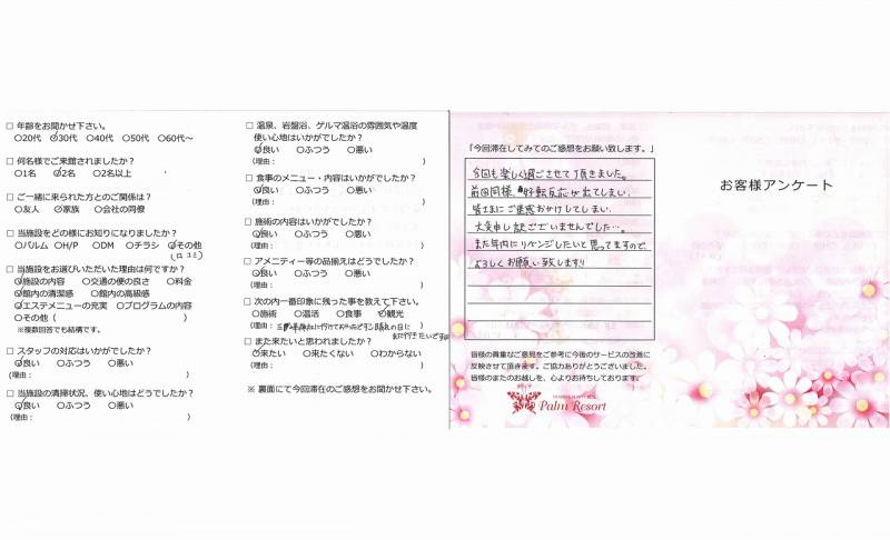 今回も楽しく過ごさせて頂きました。 前回同様、好転反応が出てしまい、皆様に ご迷惑おかけしてしまい大変申し訳ございませんでした…。 また年内にリベンジしたいと思ってますので よろしくお願い致します‼