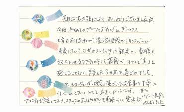 日々、自分の体を酷使している事を実感しました。 ファスティングをして、温活をする事がここまで 自分の体や気持ち的にも変えてくれるとは思わな かったので、貴重な3日間となりました。 時々自分の体を労わる時間を作って、この体験が 無駄にならないようにしたいです。 空腹辛いなというときもありましたが環境、従業員の 方々の優しさ、楽しさで頑張れました。 ありがとうございます。