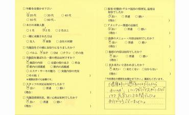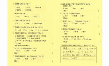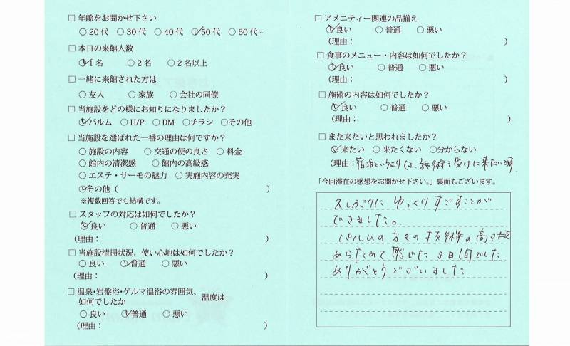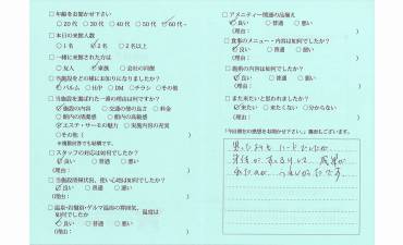 久しぶりにゆっくりすごすことができました。 パルムの方々の技術の高さをあらためて感じた 3日間でした。ありがとうございました。