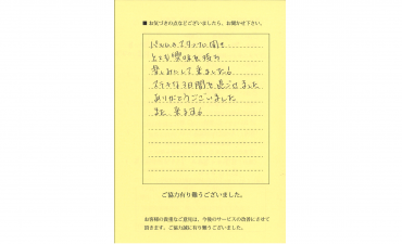 あっという間でした。スタッフの皆様もとても親切丁寧で至れり尽くせりで短いと感じました。 また、ダイエットで思うように体重が落ちこの短時間でとてもびっくりしています。今までいろいろ失敗してきたので...。 また定期的に来ればやせられそうなのでまたどうぞよろしくおねがいいたします。どうもありがとうございました。