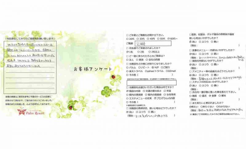 ゆったりと気持ち良く過ごさせていただいた。 観光にも連れて行って頂き、館内のワンちゃん ネコちゃんとの触れ合いも楽しかった。 温泉もツルツルで気持ち良かったです。 本当にありがとうございました。