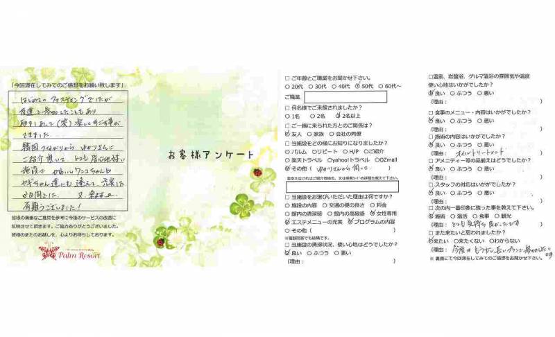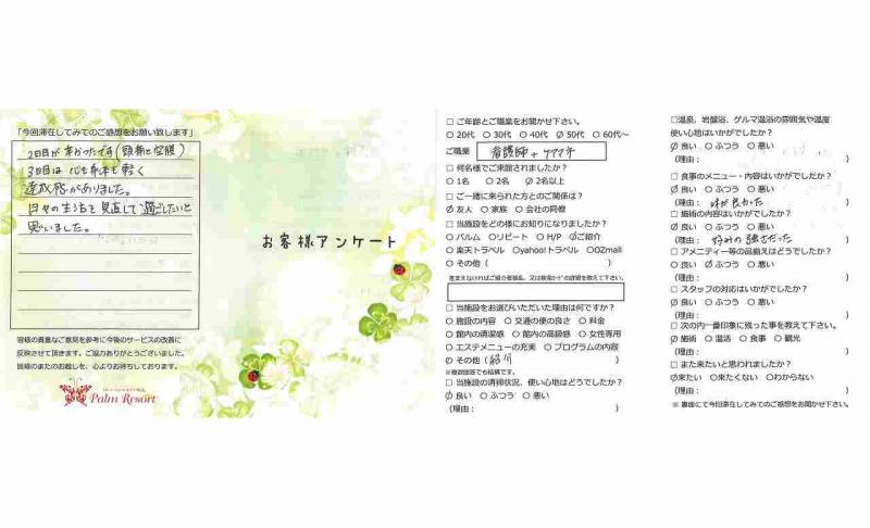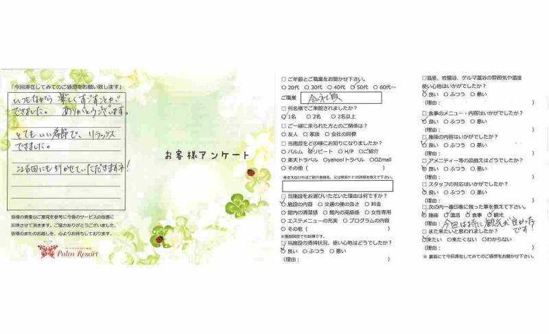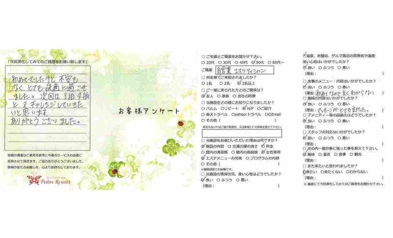 初めてでしたけど不安もなく、とても 快適に過ごせました。次回は3泊、4泊と 又、チャレンジして行きたいと思います。 ありがとうございました。
