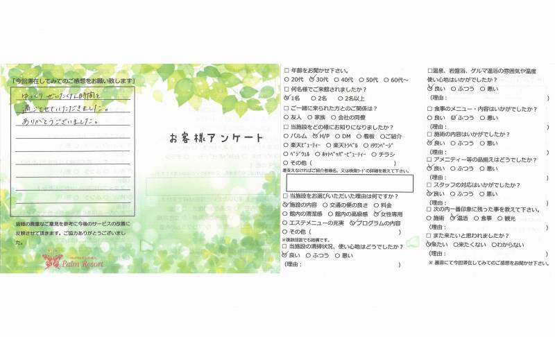 ゆっくりぜいたくな時間を過ごさせていただきました。 ありがとうございました。