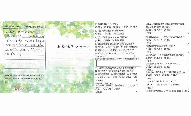 今回も、ゆっくり出来ました。 ファスティングして、リセットすることが日々の生活に 生かされる気がします。コロナで大変な中、とても配慮 していただきありがとうございました。また来たいです。