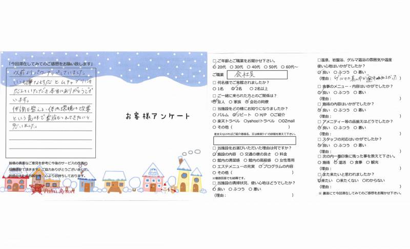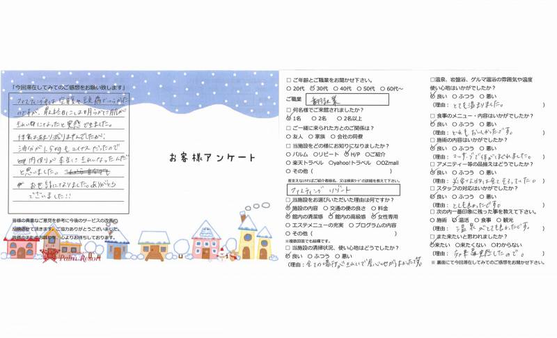 今回は初めて3泊4日コースを体験し、満足度が 違いました。2泊だとあっという間でしたが3泊 だと温活を計画的に進められました。観光も2回 で、パワーをたくさんいただきました。来るたび に秩父の景色が変わっていくのも目を楽しませて くれました。次回も、結果を出して戻ってこれる ように頑張ります!いつもありがとうございます。