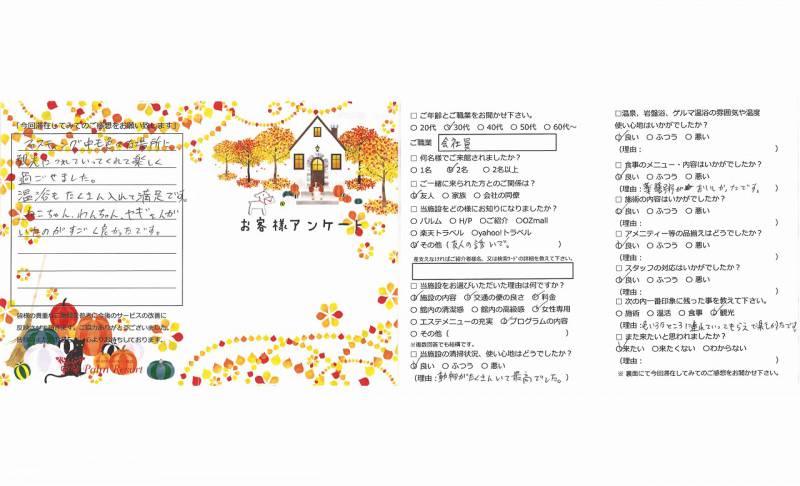 ファスティング中も色々な場所に観光に つれていってくれて楽しく過ごせました。 温浴もたくさん入れて満足です。 ねこちゃん、わんちゃん、ヤギさんがいた のがすごく良かったです。