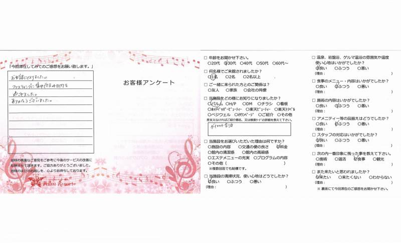 高級ホテルに泊まり、ごうかな食事を 楽しむより、何倍もぜいたくな時間に なりました。ありがとうございました。