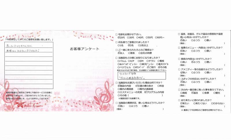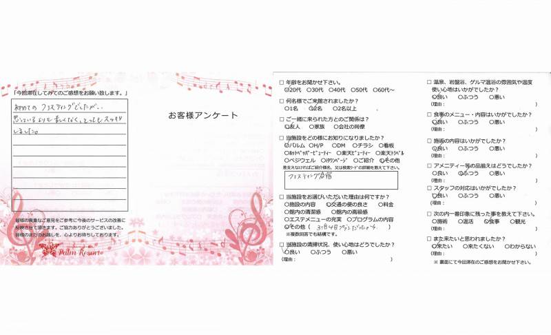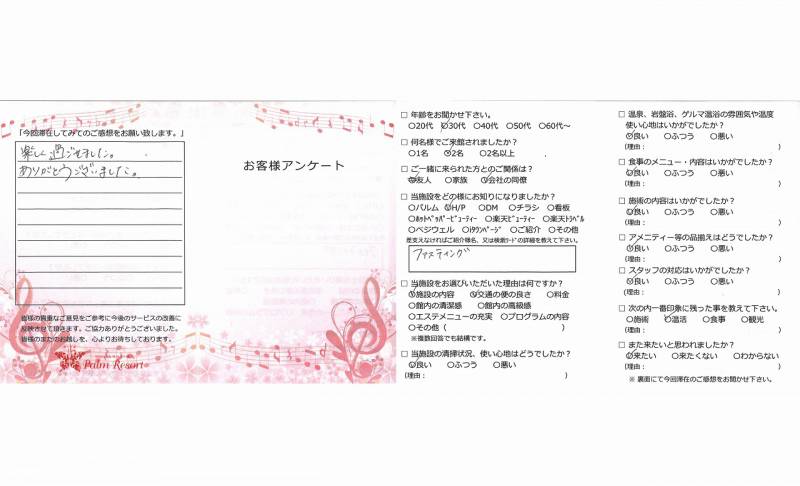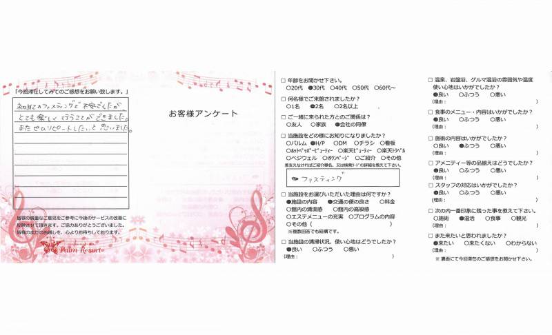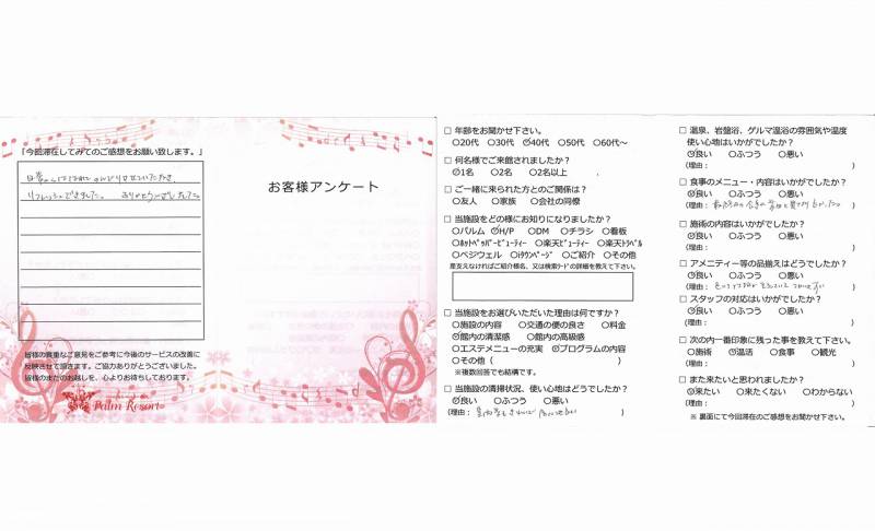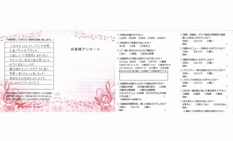 3泊4日とてもリラックスした時間を 過ごすことができました。 心配していた空腹感もあまり気に することなく、温活三昧を楽しむ ことができて満足しています。 観光案内もしていただき、また違う 季節に来てみたいと思いました。 施術もとても気持ち良かったです。 ありがとうございました‼